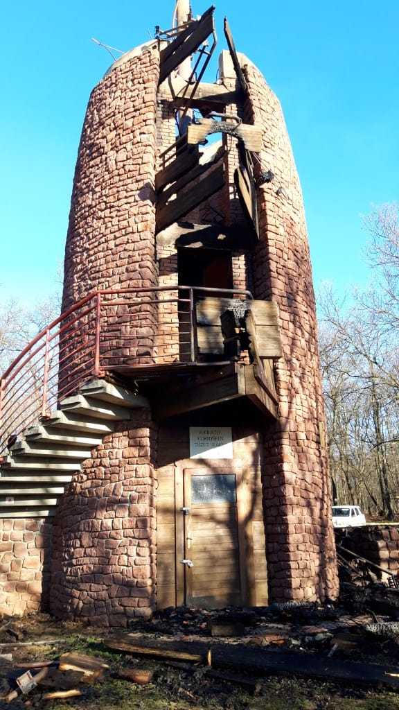 A héttonnás sérült csövet betonnal töltötték, ez tartotta a lépcsőt a Fülöp-hegyi kilátó egy évvel ezelőtti leégése előtt.