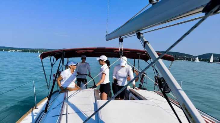 Egyikünké sem, mindig béreltük, most is így tettünk. A Jeanneau 349-es túrahajó, sosem lesz képes olyan szélsebes rohanásra, mint a sporthajók. De mi ennek ellenére élvezzük a verseny minden percét. Sosem edzünk előre, nincsenek taktikáink, praktikáink, kibérelünk egy kényelmes túrahajót, a verseny előtt egy nappal átvesszük, kipróbáljuk a rajt előtt, aztán indulás! Vállaljuk, hogy teljesen amatőrök vagyunk, és számunkra óriási kihívás végigmenni ezen a légvonalban is hosszú, mintegy 150 km-es tókerülő versenyen, de mindig nagyon boldog vagyunk, amikor megcsináljuk – szintidőn belül!