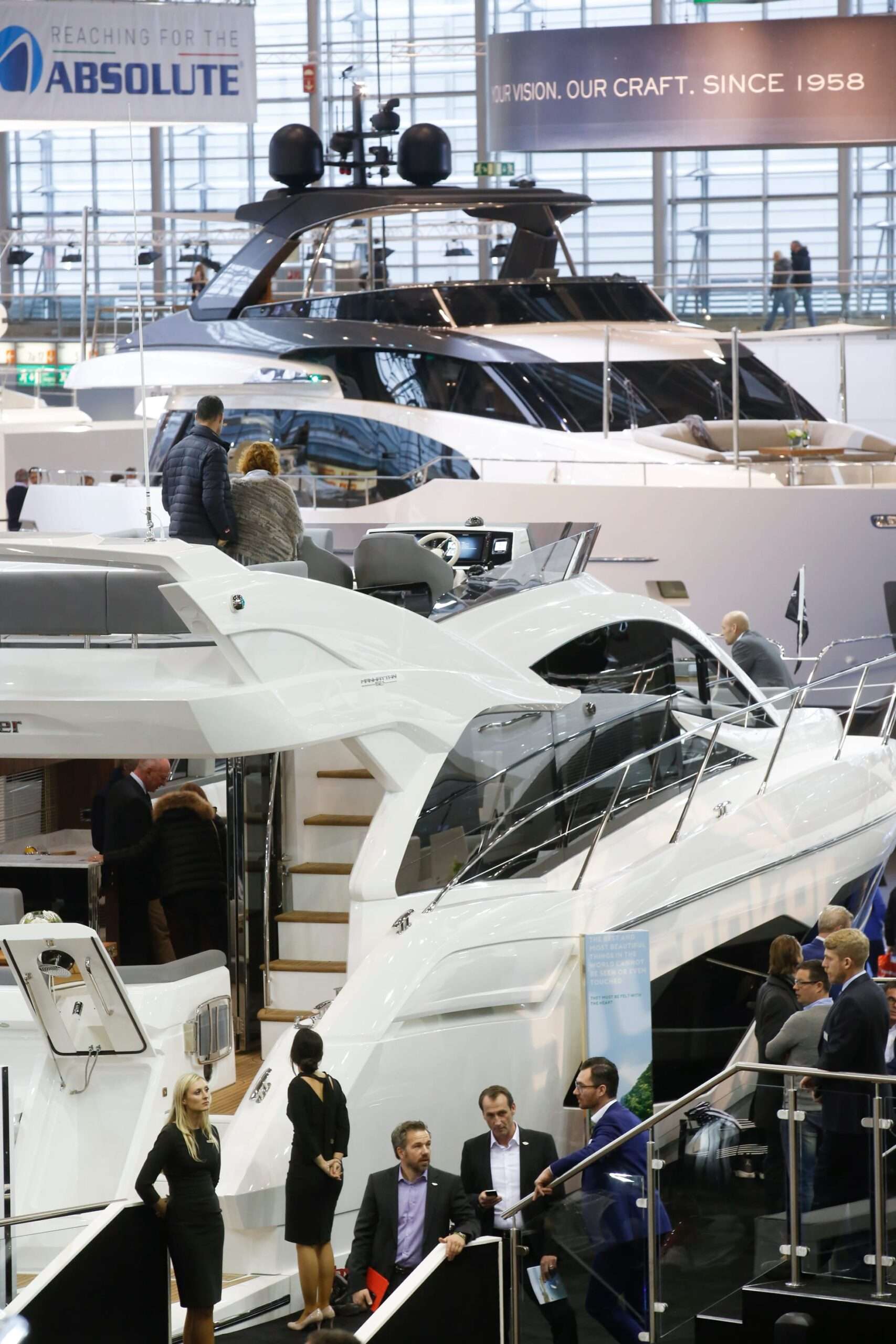 Az úgynevezett luxuskínálatú csarnokokban a gyors és karcsú tendertől a luxusjachtokig bezárólag sok mindent láthatunk, bemutatkoznak a 40 méteresnél hosszabb jachtokat készítő nemzetközi hajógyárak. A boot Interior tematikus kínálatban, amelyet a Delius-Klasing kiadó és a boot Düsseldorf közösen szervez, a luxusjachtok (luxus)felszereltségét mutatják be. A motoros hajók és jachtok ékesítik a 9-es és 10-es csarnokot. Ezek teljes területét lefoglalták a kiállítók már hónapokkal a vásárnyitás előtt. Itt mutatkozik be minden, a motoros hajók nemzetközi piacán ismert és elismert gyártó. A két csarnok kínálata csábító a kezdőknek és a tapasztalt motoros hajósoknak egyaránt. A kezdőknek a Start Boating kínál tanácsadást a 10-es csarnokban. A Rajnán a vásárvárosig vezető virtuális motorcsónakázással szerezhetnek első tapasztalatokat a tényleges hajózási körülményekről, a szakértők pedig jó tanácsokkal is segítik az érdeklődőket.
