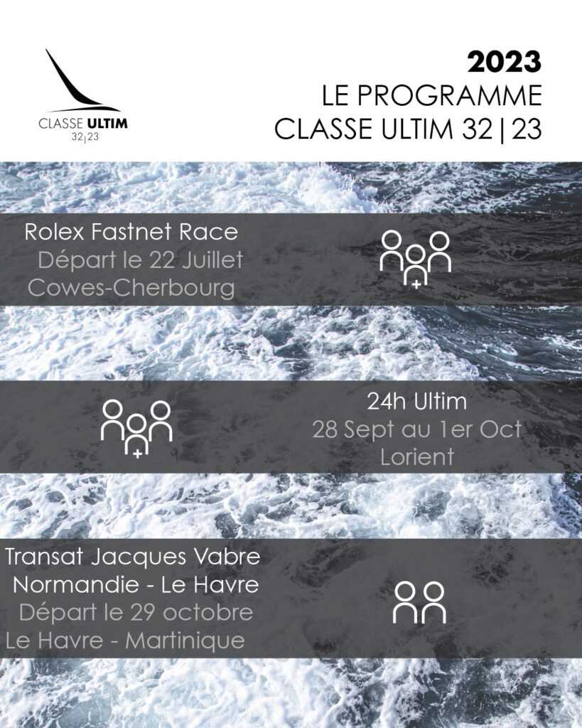 Míg a három tapasztalt Ultim-hajós, Charles Caudrelier, Armel le Cléac’h és Thomas Coville a Route du Rhum 2022 teljesítésével kvalifikálta magát, addig az újonc Tom Laperche-nek és Anthony Marchand-nak egy 2500 mérföldes egyszemélyes kvalifikációs menetet kellett teljesítenie. Jelenleg mindannyian az idei év azon versenyeire készülnek, amelyeken indulhatnak: a ma elrajtolt, rekorddöntő Rolex Fastnet Race-re, a 2023. szeptember 19-24. közötti Défi Azimut Lorient Agglomération-ra és az október 29-i Transat Jacques Vabre Normandie Le Havre-ra.