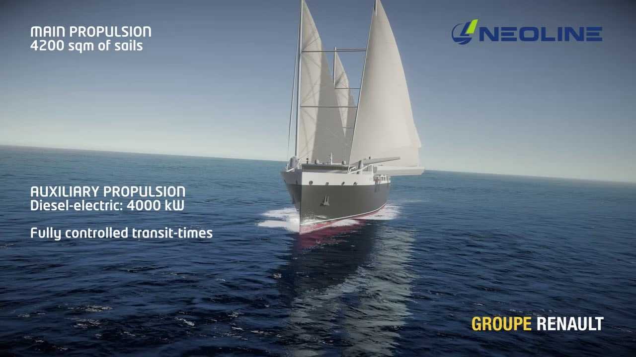 A Renault úgy tervezi, hogy két vitorlás hajót rendel a Neoline hajóépítő vállalattól összesen 70 millió euró értékben. Az első ilyen vitorlás komp építése már jövő év elején megkezdődik, a másik pedig nlhény hónappal utána. A jármű 136 méteres lesz, összesen 4200 négyzetmétert kitevő vitorlákkal, a fedélzeten 15 matróz teljesít majd szolgálatot. A raktérben 478 személygépjármű fér el. A 4000 kilowattos dízelmotor csak szélcsend esetén lép működésbe.