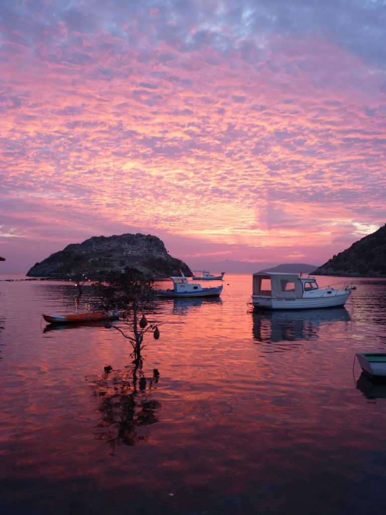 Minél keletebbre érünk, annál több homokos strandszakasz előtt hajózunk el. A hegyek továbbra is 1000–3000 méter magasak és zöldek az augusztusi nagy melegben is. Ezek egyike a török Olümposz, amelyre drótkötélpálya visz fel kabinos felvonóval. Lábainál ókori település romjai bújnak meg és strandok sorakoznak.