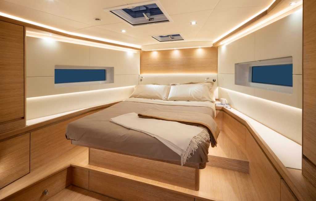 A legszélesebb pontja 4,78 méter, kokpitjában akár két asztal is elfér. A hajóbelsőben több újdonság található: a hagyományos 3 kabinos, 2 fürdőszobás elrendezés mellett igény esetén egy harmadik fürdőszoba és egy hosszanti konyha is elfér.