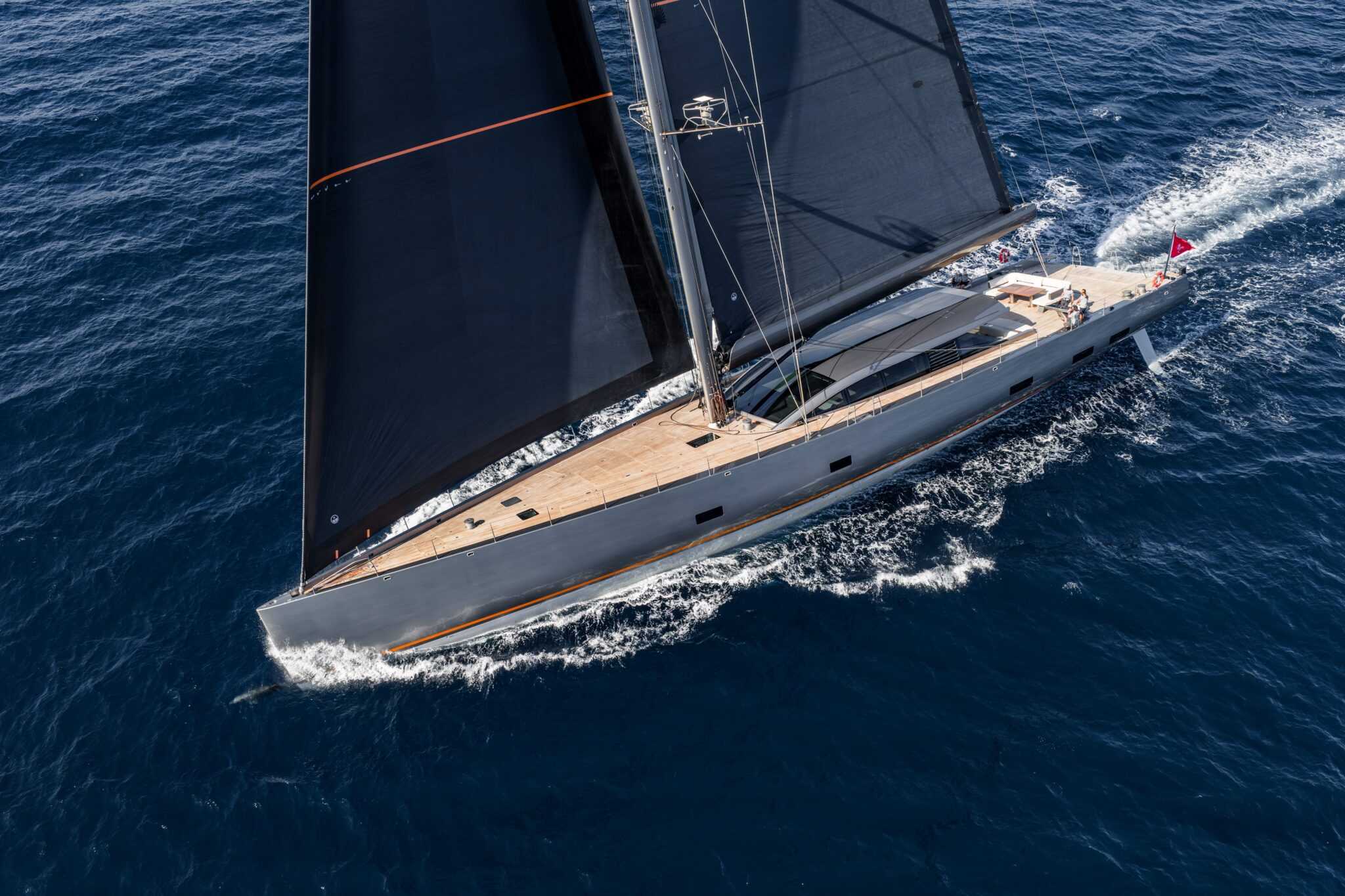 A főszalon nyitott elrendezése alkalmas társas együttlétekre és nyugodtabb pihenésre, miközben vizuálisan szorosan kapcsolódik a fedélzeti kokpithez. A belső tér arányai kifejezetten nagyvonalúak, amit a gondosan megválasztott bútorok és a jól tagolt zónák tovább erősítenek. A fedélzet alatti vendégtér öt kabint foglal magában, tíz vendég számára biztosítva kényelmes elhelyezést.
