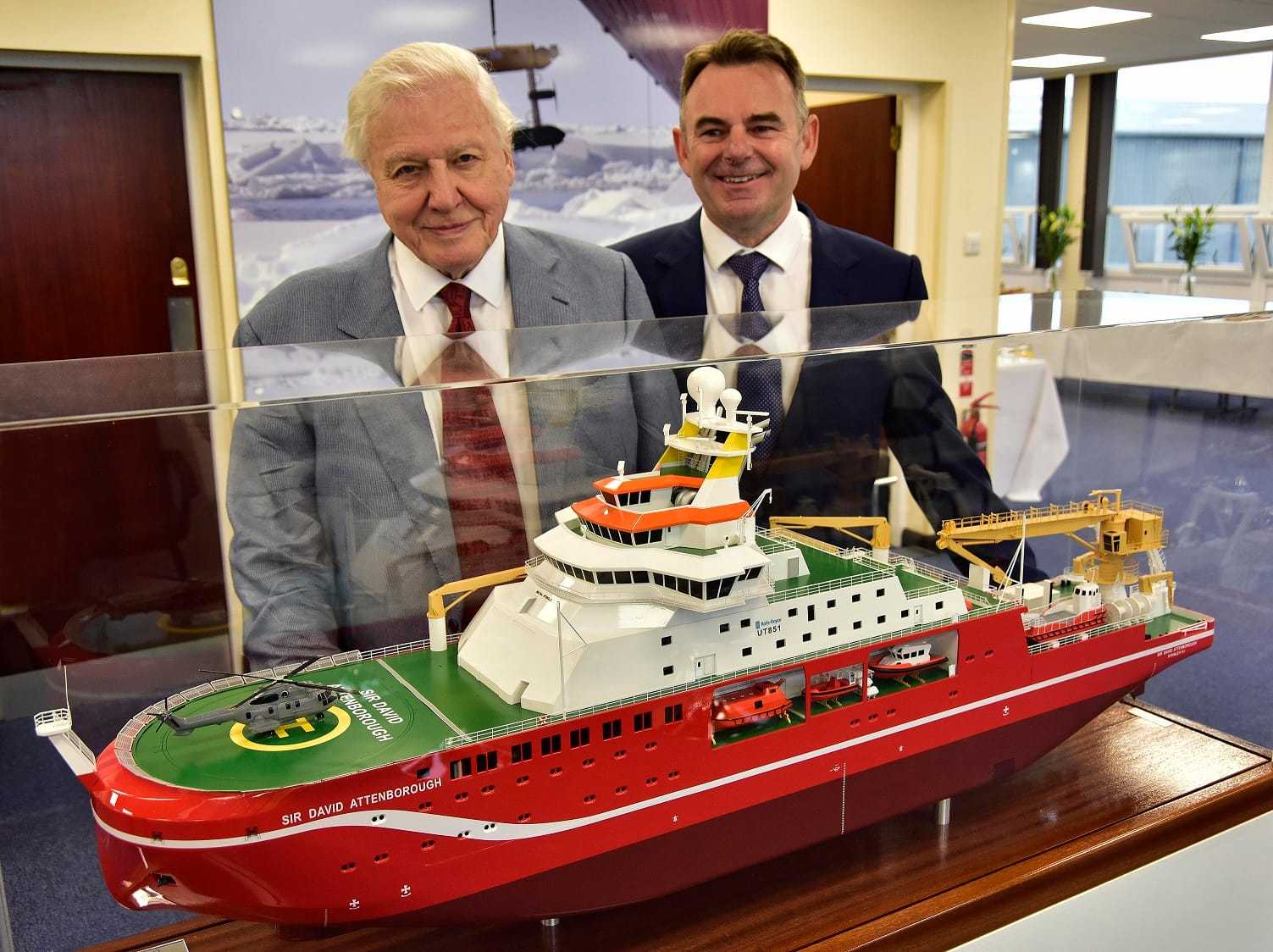 Az RRS Sir David Attenborough, amelyet a világhírű brit természettudósról neveztek el, az online szavazáson óriási többséggel, 124 ezer vokssal a Boaty McBoatface nevet kapta, ami lefordíthatatlan magyarra, de talán Hajós Hajóarcot jelent. A szigetország Környezettudományi Kutatási Tanácsa (NERC), amely a szavazást kiírta, nem volt vevő az ötletre, ezért végül figyelmen kívül hagyva a népakaratot, Attenborough-ról nevezte el a hajót.