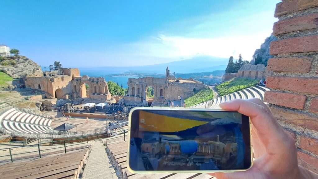Capo d’Orlandóból visszaúton Cataniába ne hagyjuk ki Taormina meglátogatását. Hajóval messze esik az Eoli-szigetektől, és kétszer kellene átkelnünk miatta a Messinai-szoroson. Taormina Kelet-Szicília gyöngyszeme, Messina és Catania között található félúton. Hajóval a Mazzaro-öbölben a legjobb horgonyozni, mivel innét indul fel a kabinos felvonó a hegyoldali városba, vagy Giardini Naxos kikötőjébe köthetünk be. Taormina nem tengerparti település, 400 méter magasságban fekszik a tenger szintje felett, pazar kilátással a három természetvédelmi öbölre a lábainál.